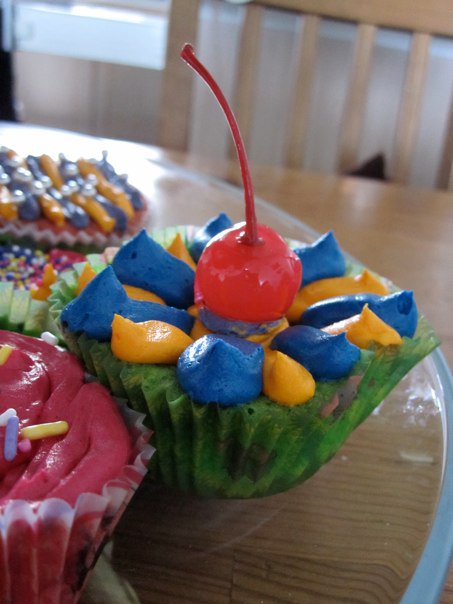 Ég hef gert þessa köku ótal sinnum. Ég hef einnig sett hana í muffinsform og skreytt með smjörkremi. Snákar, eldfjall og risaeðlur hafa orðið til í mínum eldhúsum sem og regnbogakökur.