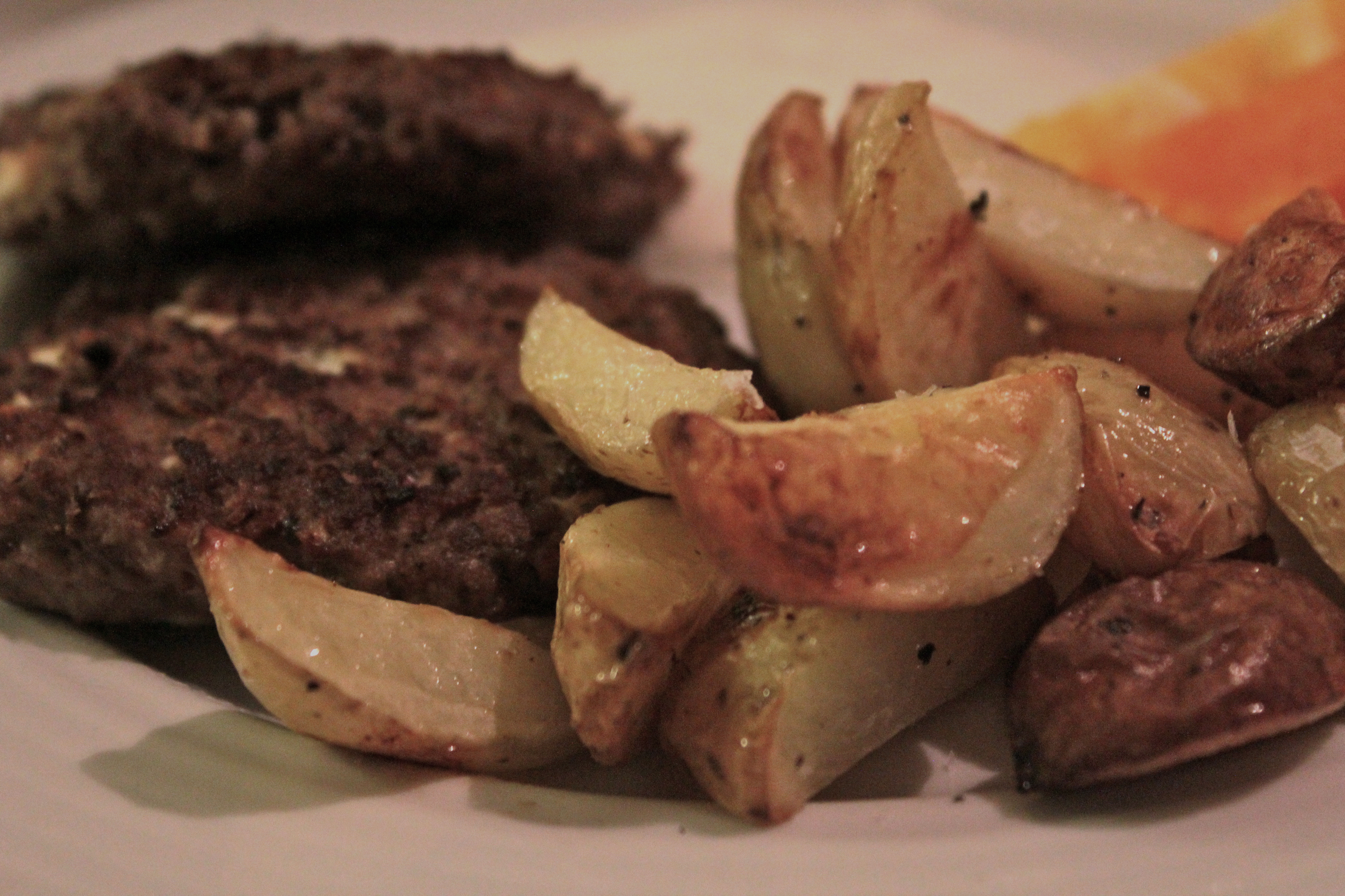 Kartöflurnar skornar í báta og velt upp úr olíunni og kryddunum. Bakaðar í ofni við 225 gr. í 20 – 25 mín. eða þar til þær eru gegnum steiktar.