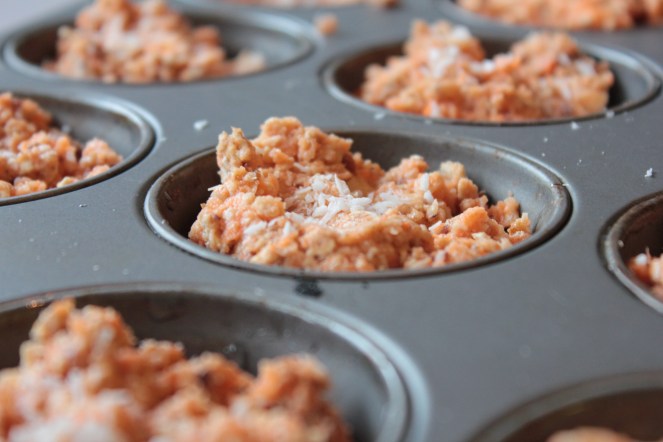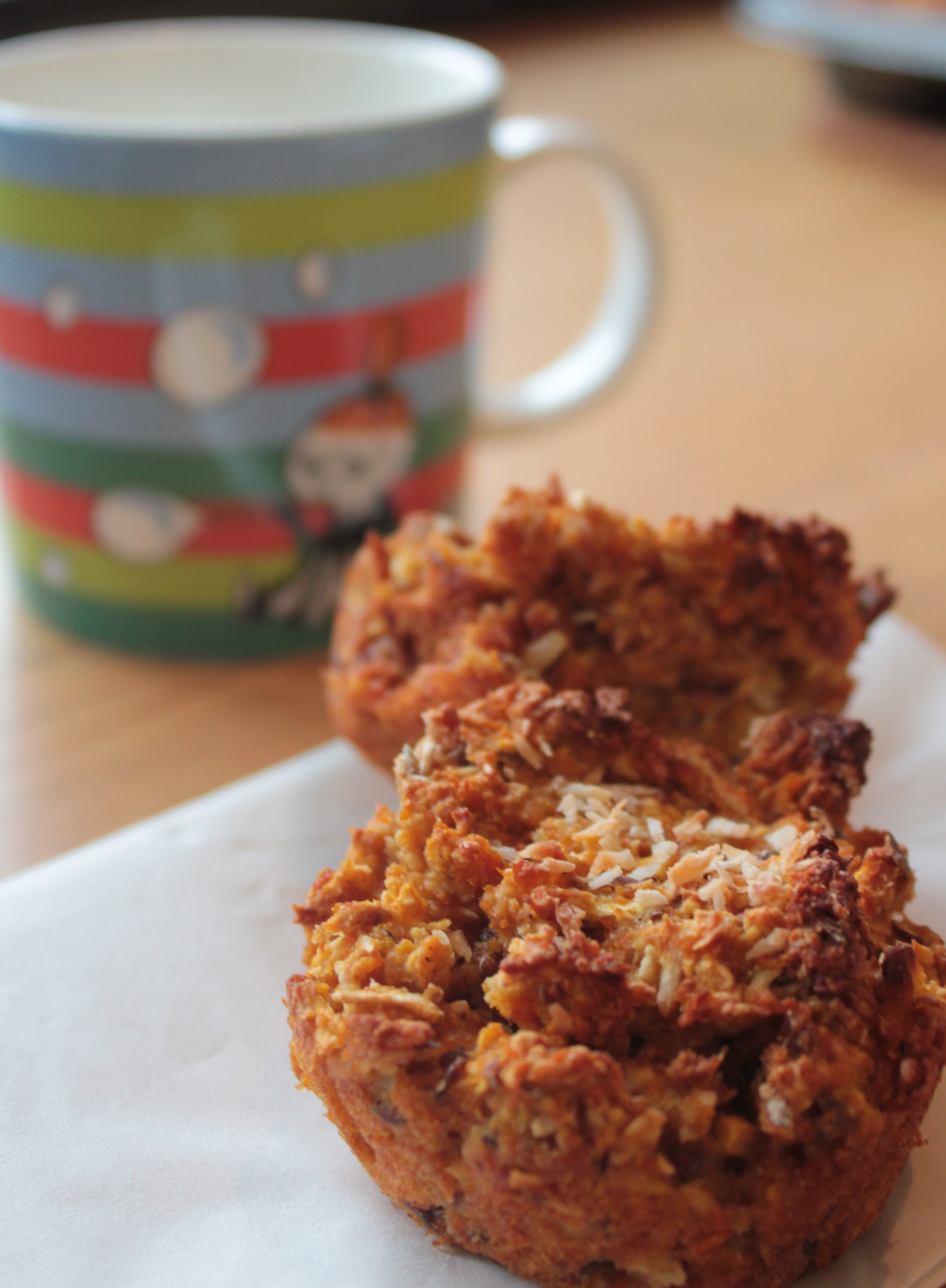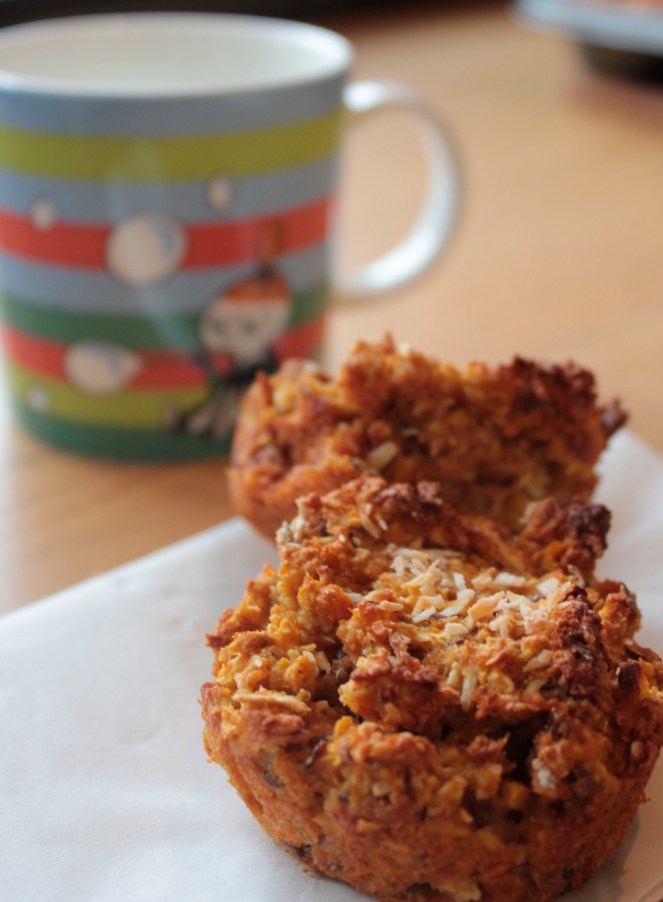 Möffins með gulrótum og kókos (og 2 litlum eplum)
