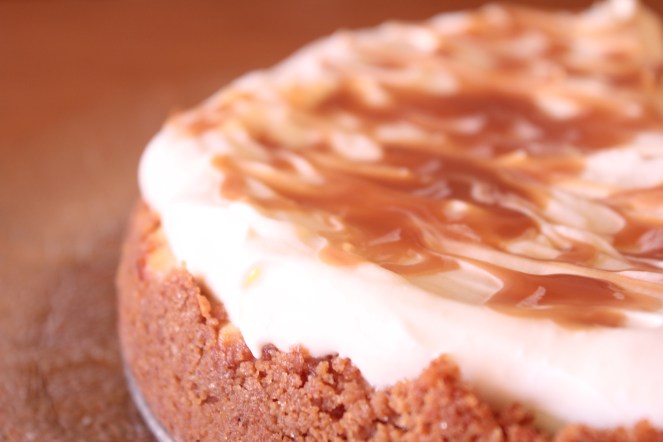 Til að búa til botninn er Digestive-kexið mulið alveg niður. Blandað saman við sykur, kanil og smjör með gaffli þar til allt er vel blandað saman. Sett í formið og mulningnum er þjappað á botninn og upp á hliðarnar (svona ca. 2/3 af leiðinni upp á hliðarnar). Bakað í 6 – 8 mínútur. Látið kólna í 10 mínútur.