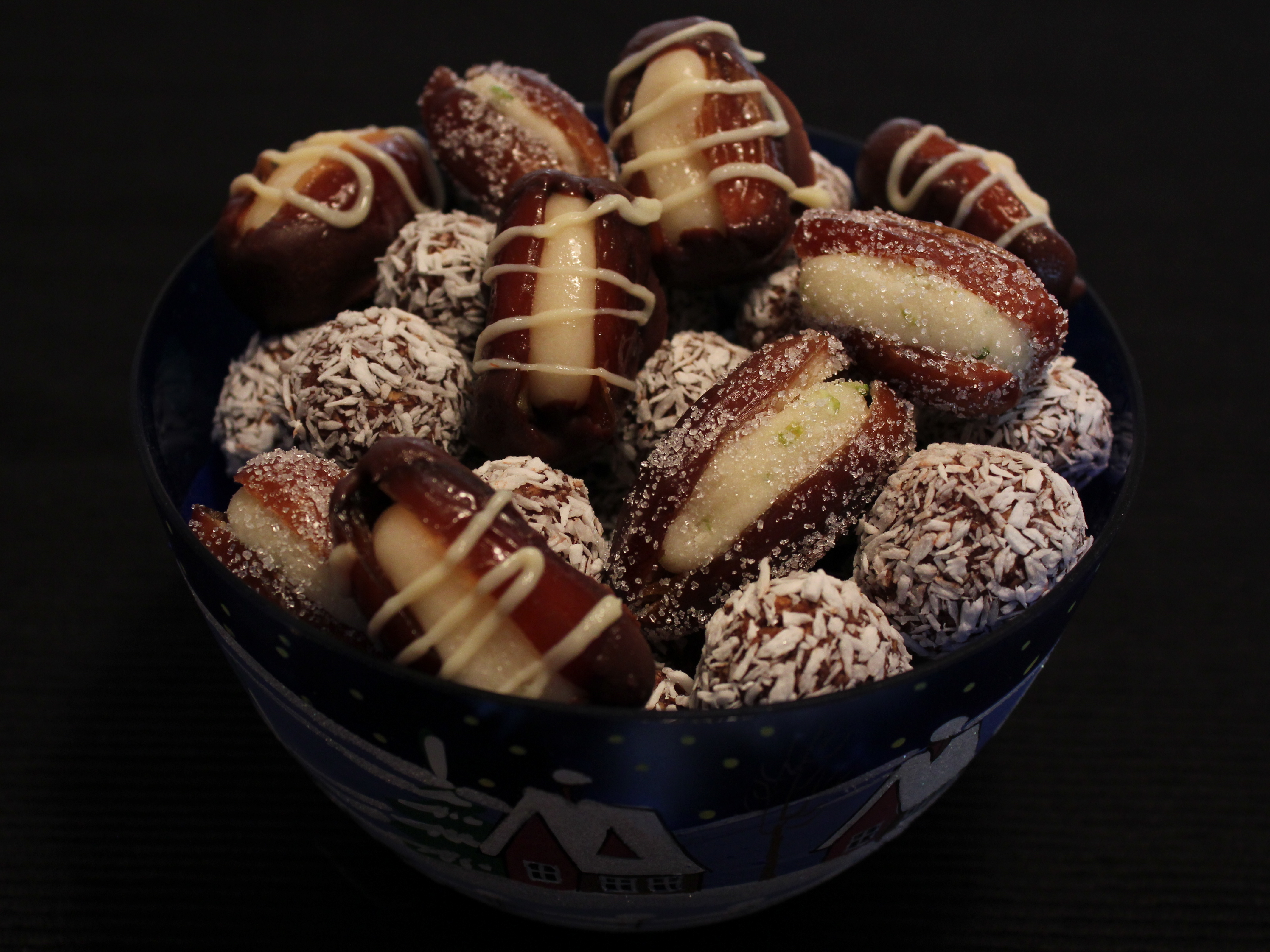 Það eru mörg ár síðan ég byrjaði að gera konfekt fyrir jólin. Ef ég man rétt þá var það jafnvel áður en ég flutti að heiman 🙂 Hvaða konfekt ég hef gert hefur verið mismunandi á milli ára. Þó er einn moli sem ég geri alltaf og það er döðlu-marsipan hjúpað með súkkulaði, ég komst reyndar ekki í að gera hann fyrr en á milli jóla og nýárs núna í ár en hann var gerður engu að síður.