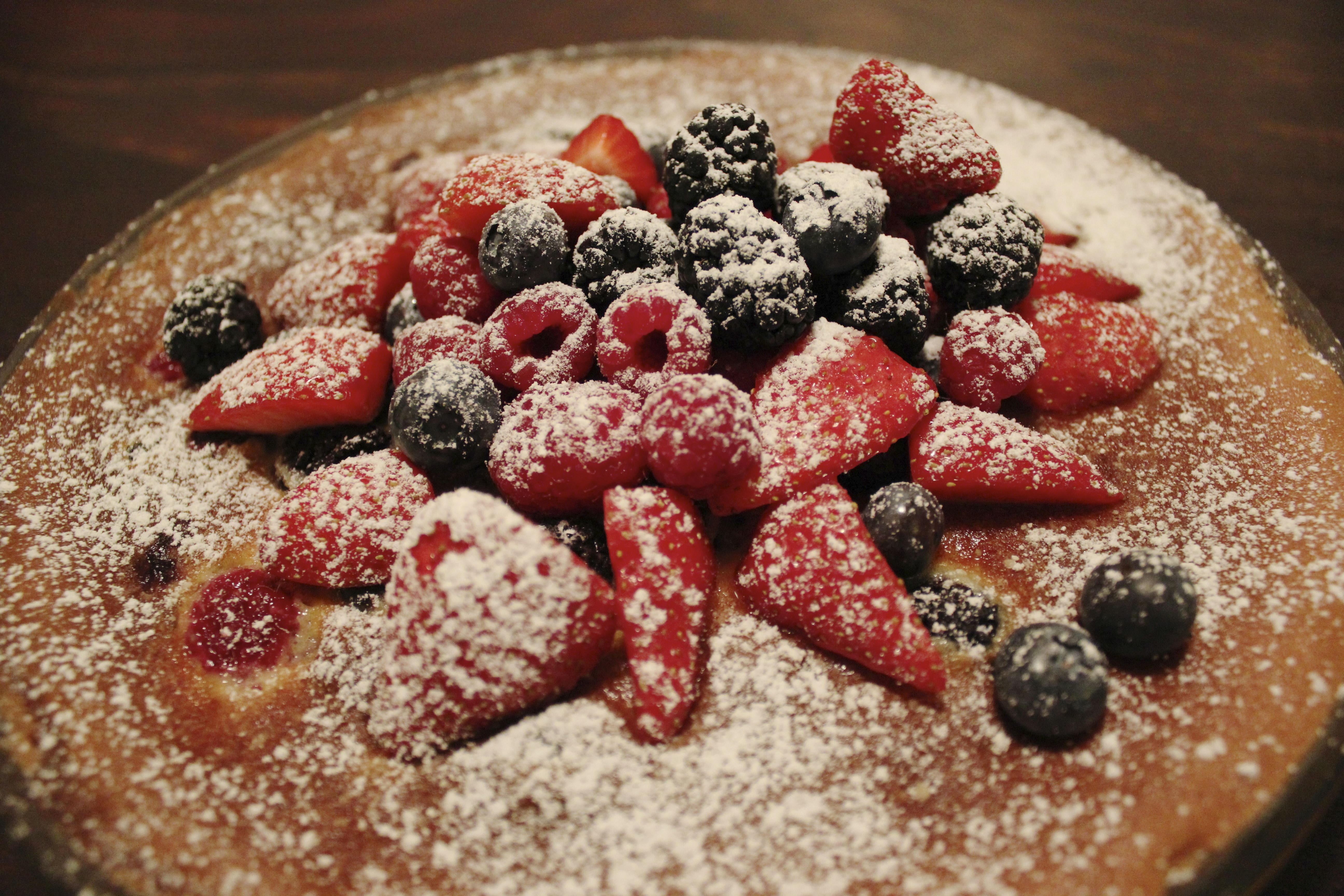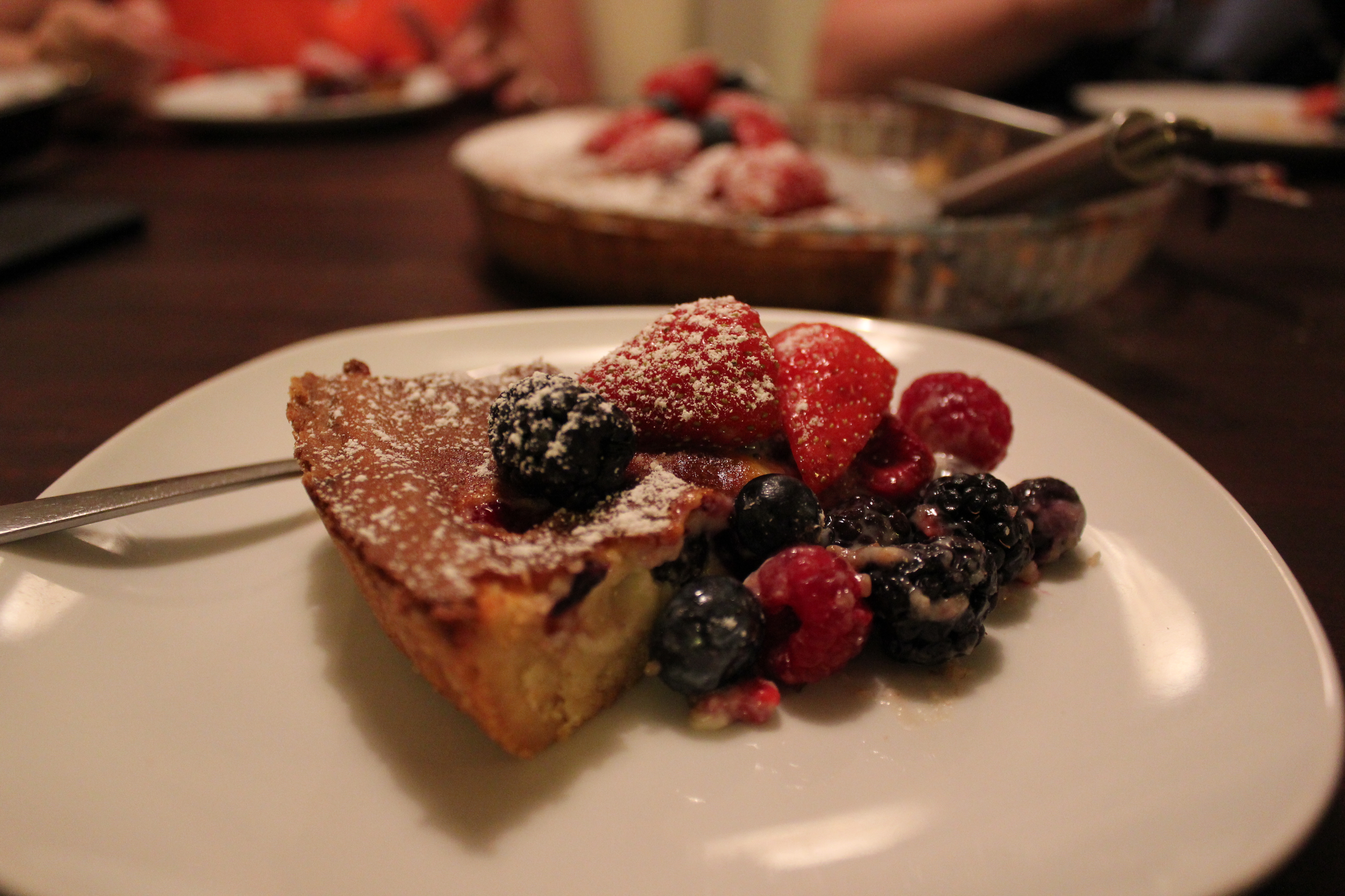 Látið bökuna kólna, skreytið með að lokum með berjum og sigtið flórsykur yfir.