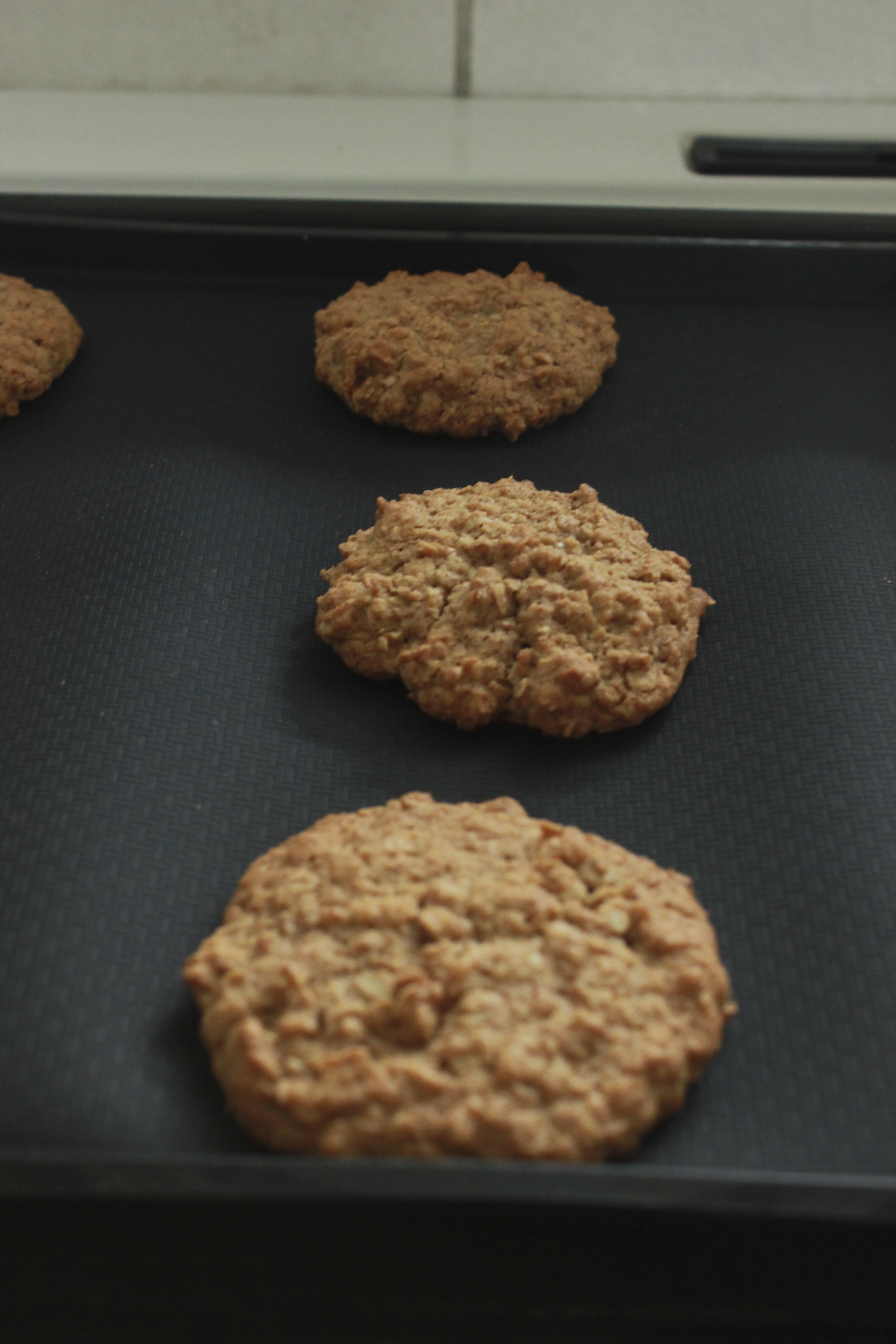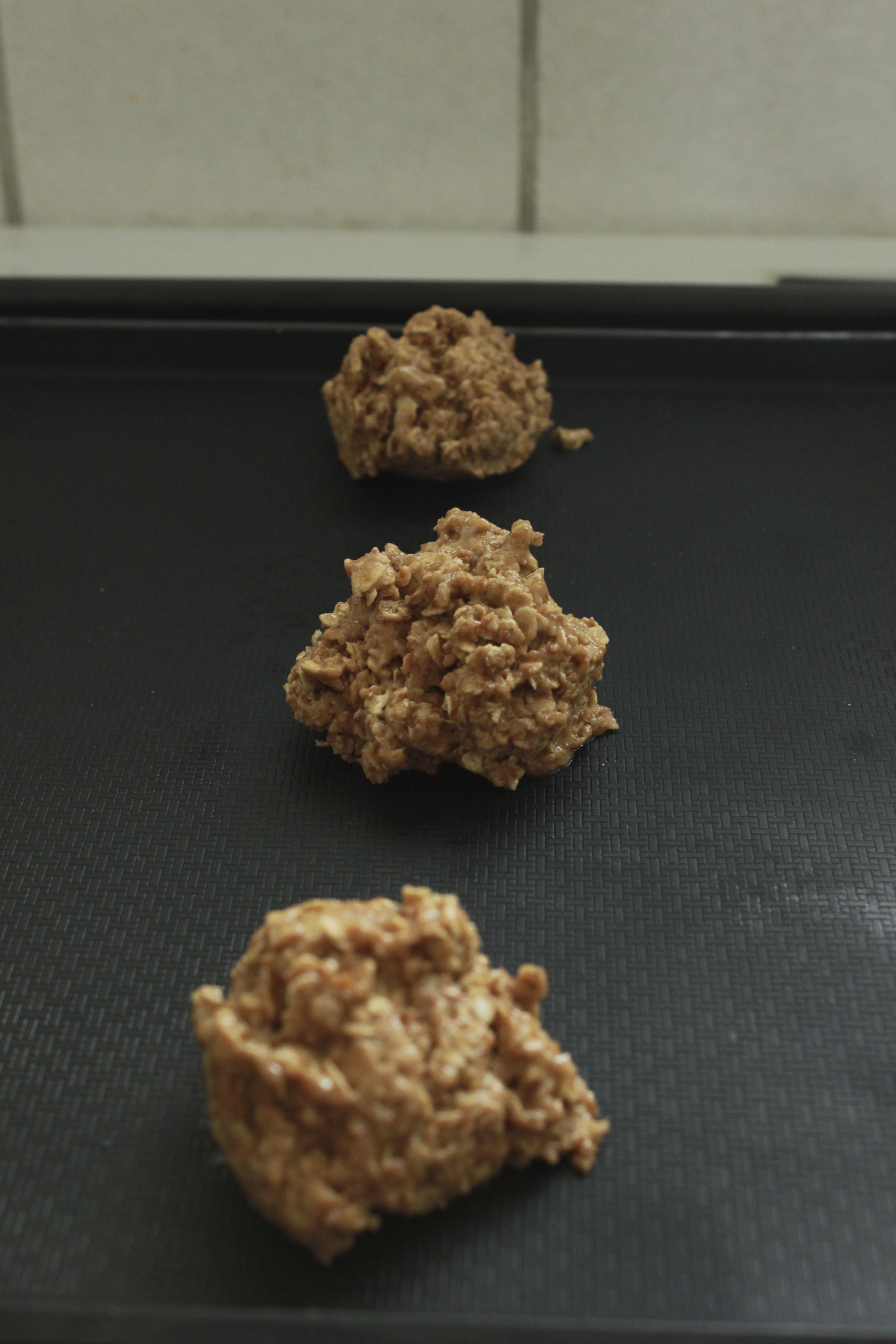 Leggið bökunarpappír á ofnplötu. Setjið 1 msk af deigi á bökunarpappírinn með 3-4 cm millibili. Bakið í 12 -13 mínotur eða þar til þær eru gylltar. Ef þið viljið hafa þær stökkar þá má baka þær aðeins lengur.
