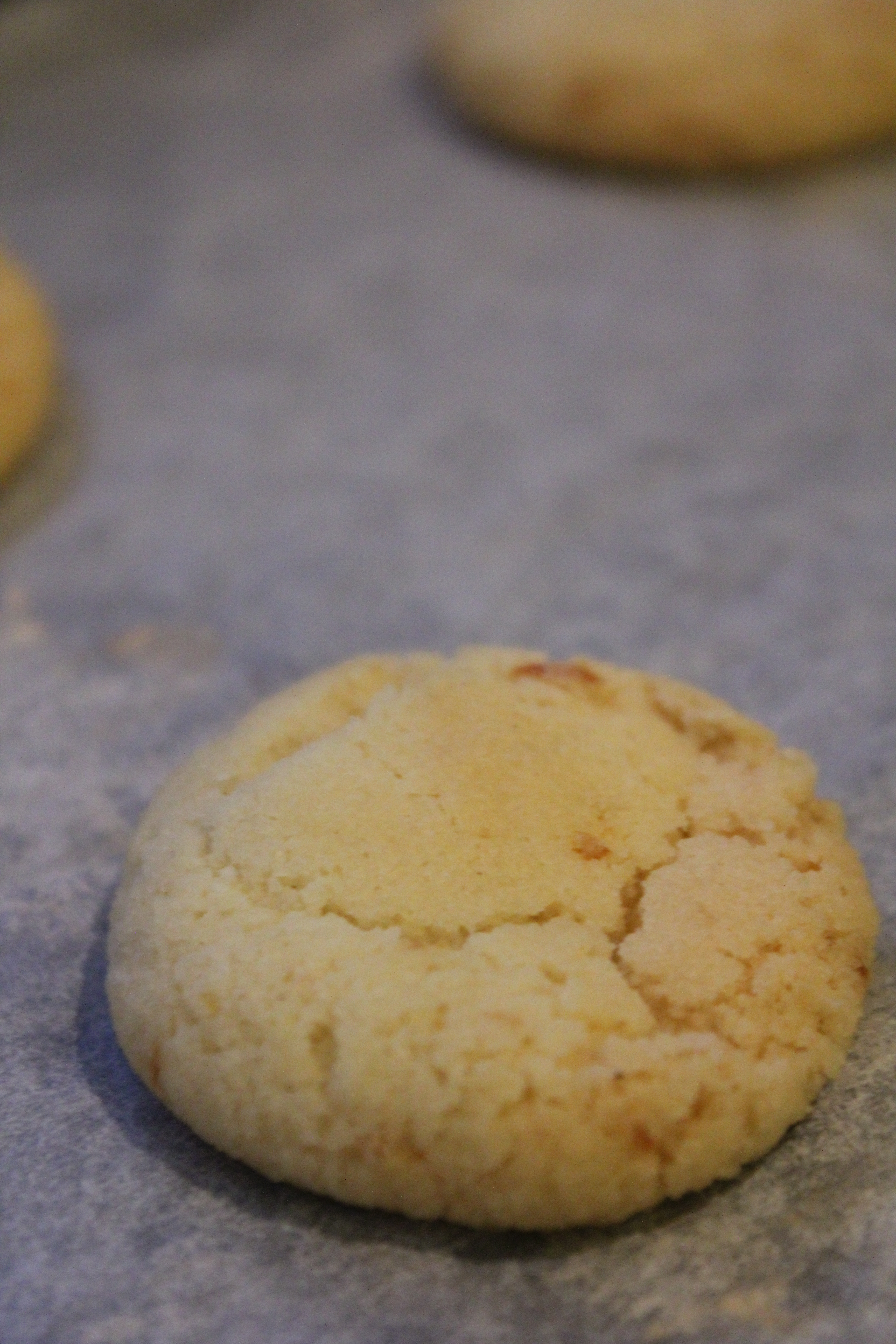 Búið til litlar kúlur úr deiginu og leggið á ofnplötur sem búið er að klæða með bökunarpappír. Passið að setja ekki of þétt saman, kökurna fletjast út í ofninu.