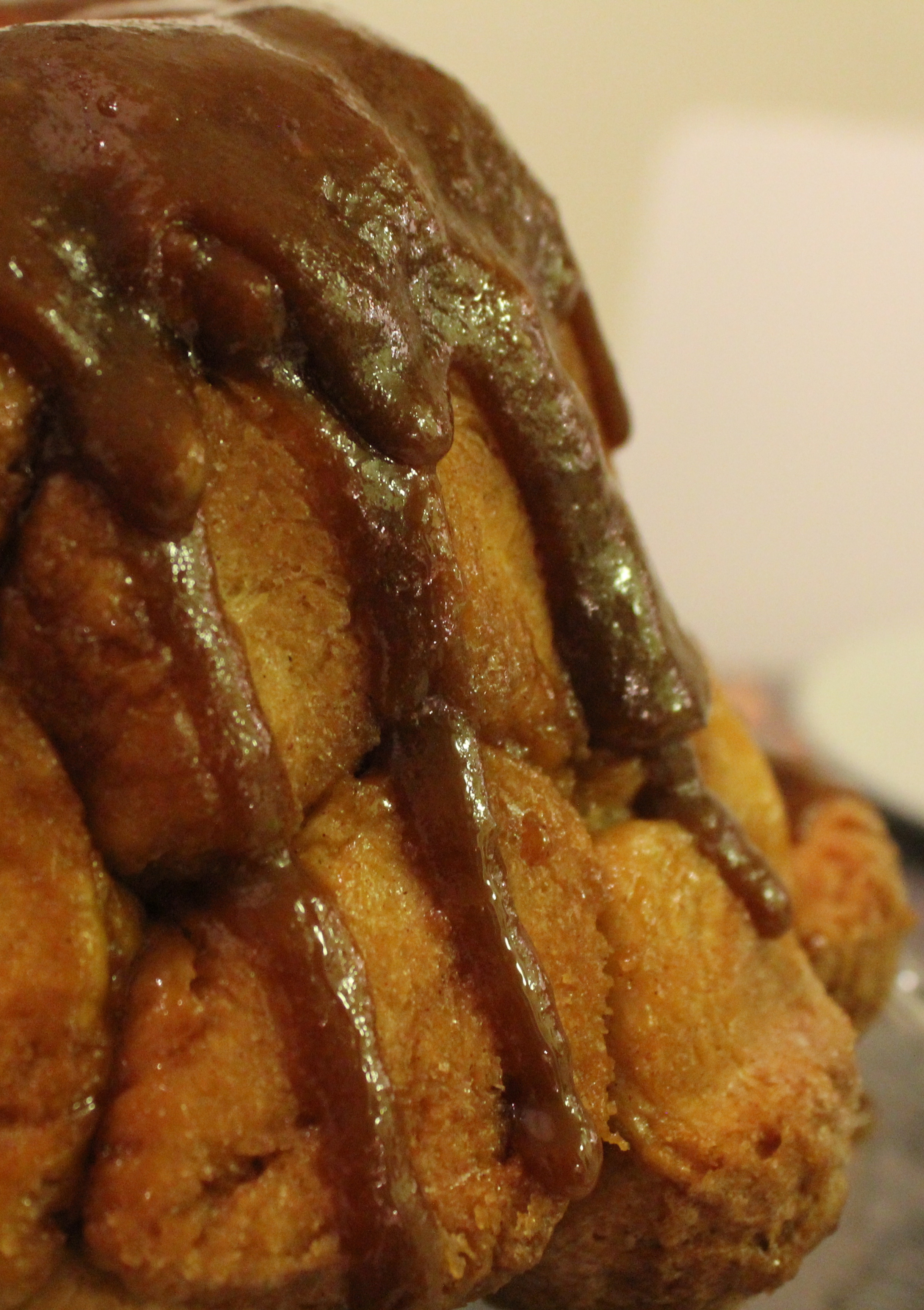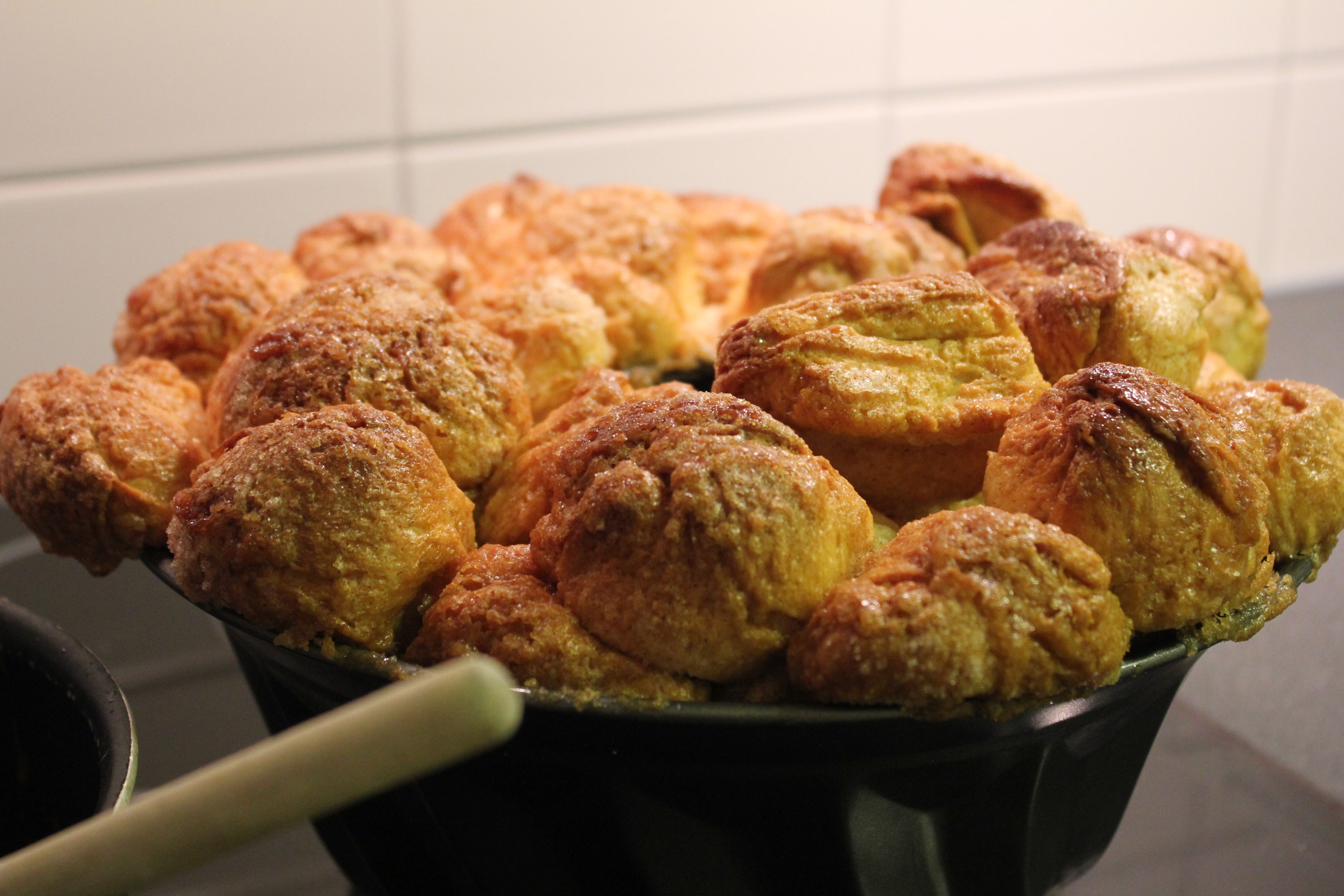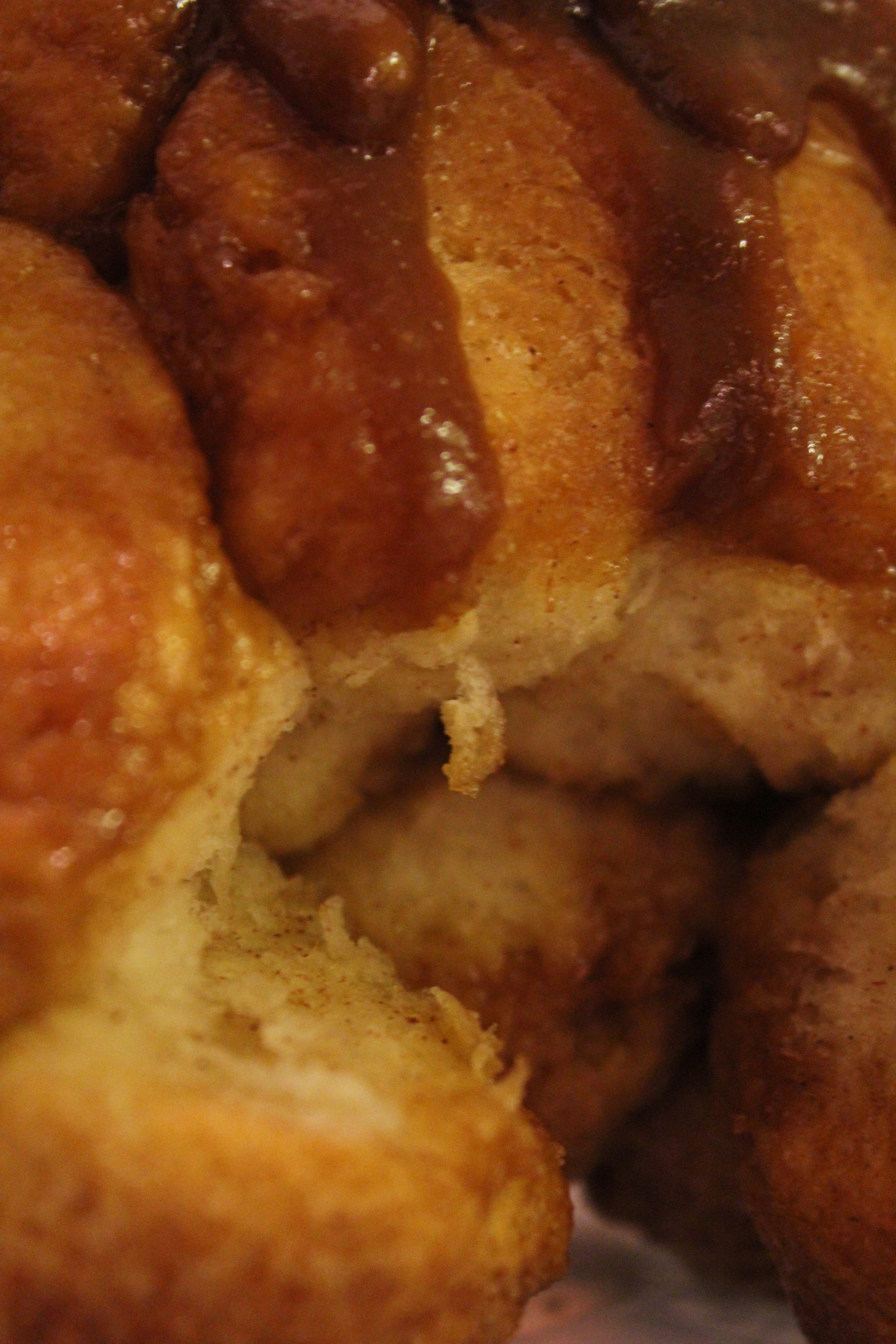 Ég er búin að vera með þetta kanilkúlubrauð á todo-listanum mínum í marga mánuði og fannst tilvalið að prófa það í gær. Við fjölskyldan vorum nýkomin úr sundi (og það rándýru, eitt af því sem við söknum mikið frá Íslandi skal ég segja ykkur). Þetta er eitthvað sem kallast monkey-bread eða apabrauð í ameríku og er víst talsvert vinsælt þar. Ég var svolítið að spá í hvort karamellan yrði ekki dálítið overkill en ég vil helst ekki breyta uppskriftum mikið fyrr en ég er búin að prófa þá upprunalegu einu sinni þannig að ég gerði þetta eins og leiðbeiningarnar mæltu fyrir um. Og herregud bara, þvílíkt nammi. Það varð eitthvað lítið um kvöldmat á heimilinu þegar við fjölskyldan vorum búin að úða þessu í okkur! Þetta var eiginlega bara alveg hræðilega gott…