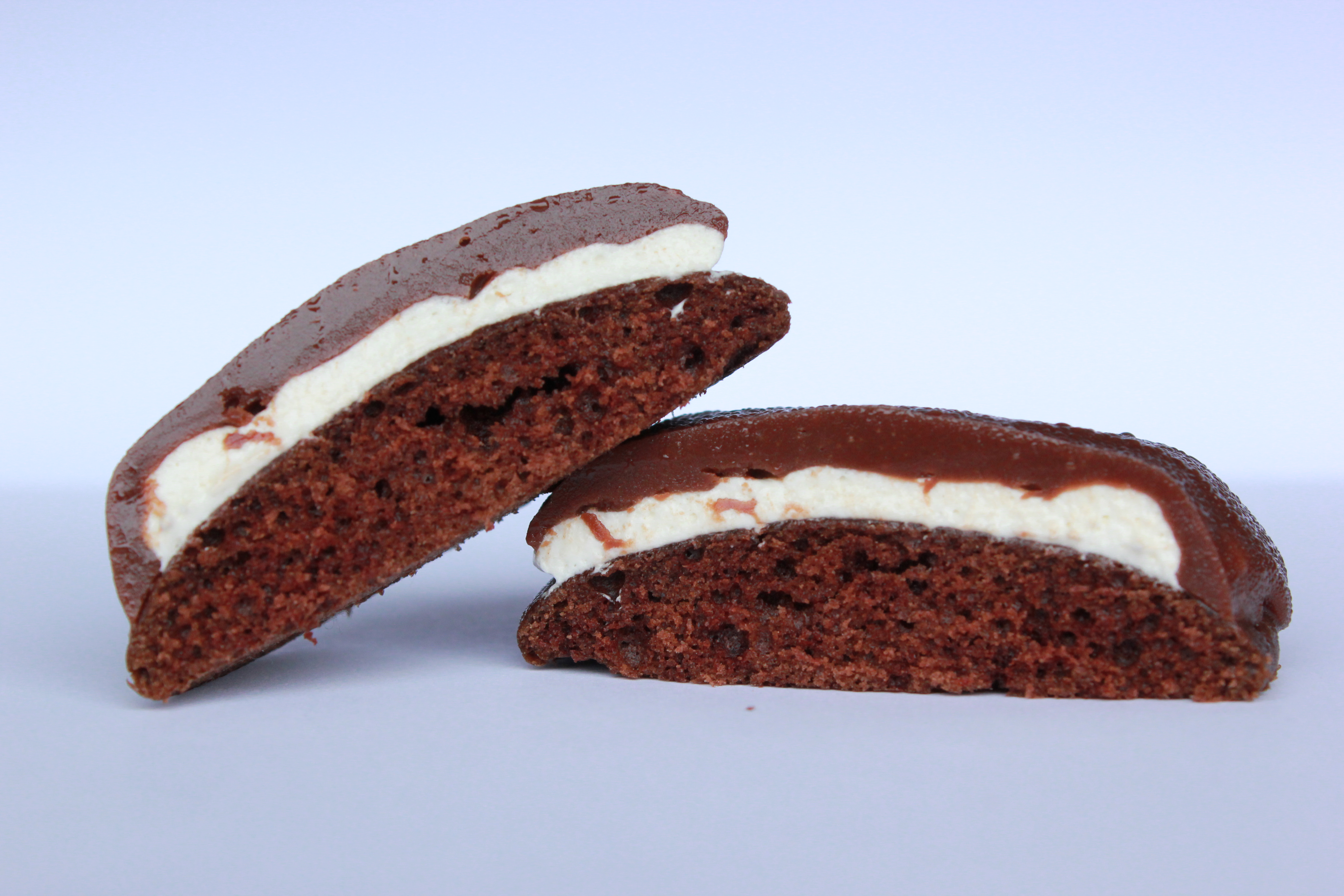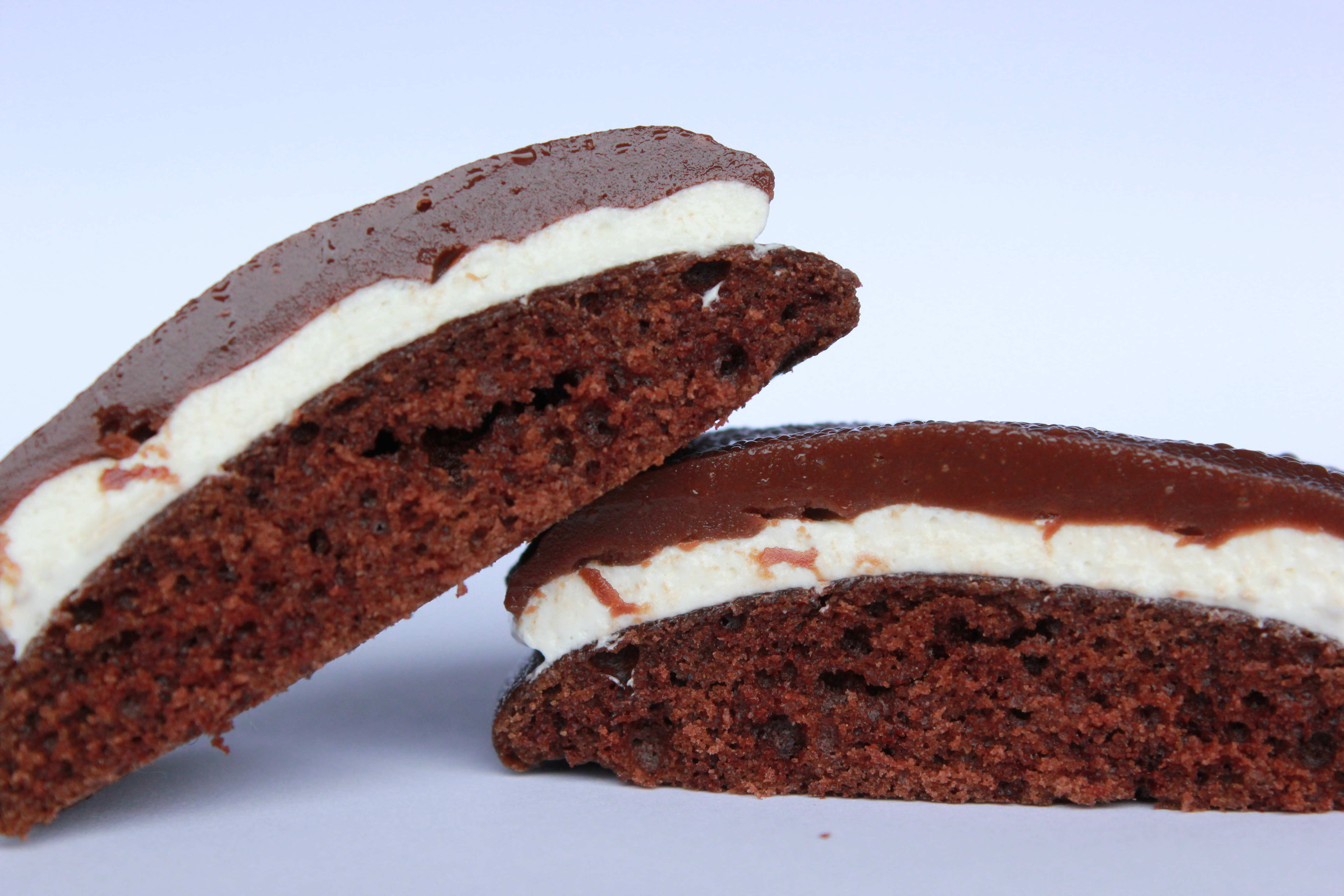 Það er langt síðan ég bakaði þessar dásamlega gómsætu smákökur. Mig vantaði eitthvað til að taka með mér í vinnuna þegar ég átti afmæli (í ágúst). Þessar kökur runnu ljúflega niður. Það er svoldið maus að útbúa þær en þær eru alveg þess virði. Ég sé fyrir mér að það sé ekkert mikið lakara að notast við Devil‘s Food Cake frá Betty Crocker til að auðvelda sér vinnuna 🙂 Er maður ekki alltaf að reyna að hámarka skilvirknina 😉 Þessi uppskrift er ekkert mjög ólík þessari Whoopi pie köku sem Stína setti á bloggið fyrir svolitlu síðan.