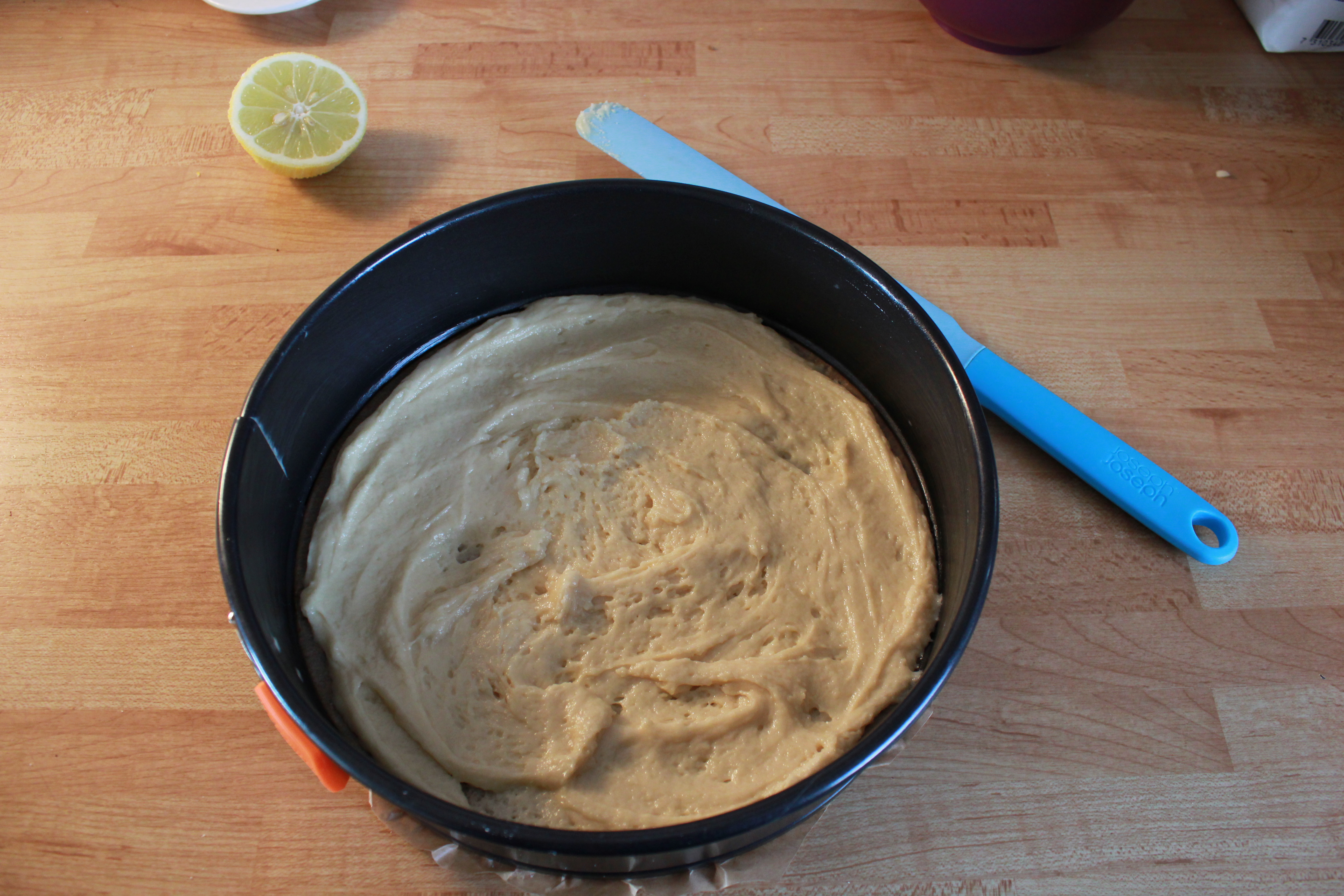 Eftir að hún er komin úf ofninum fellur hún svolíið. Látið kökuna kólna og takið hana úr forminu.