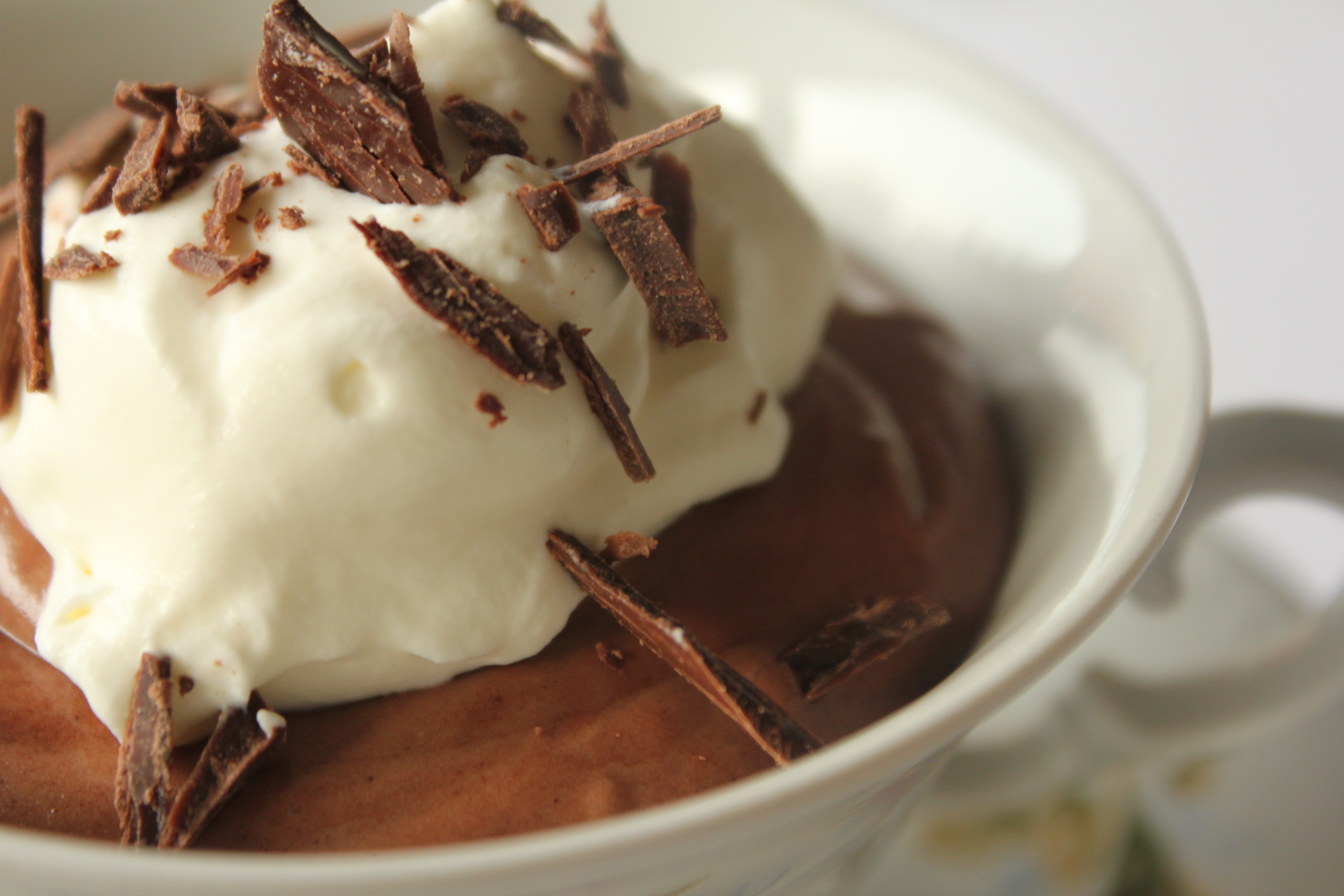 Borið fram með rjóma og súkkulaðibitum stráð yfir áður en músin er borin fram.