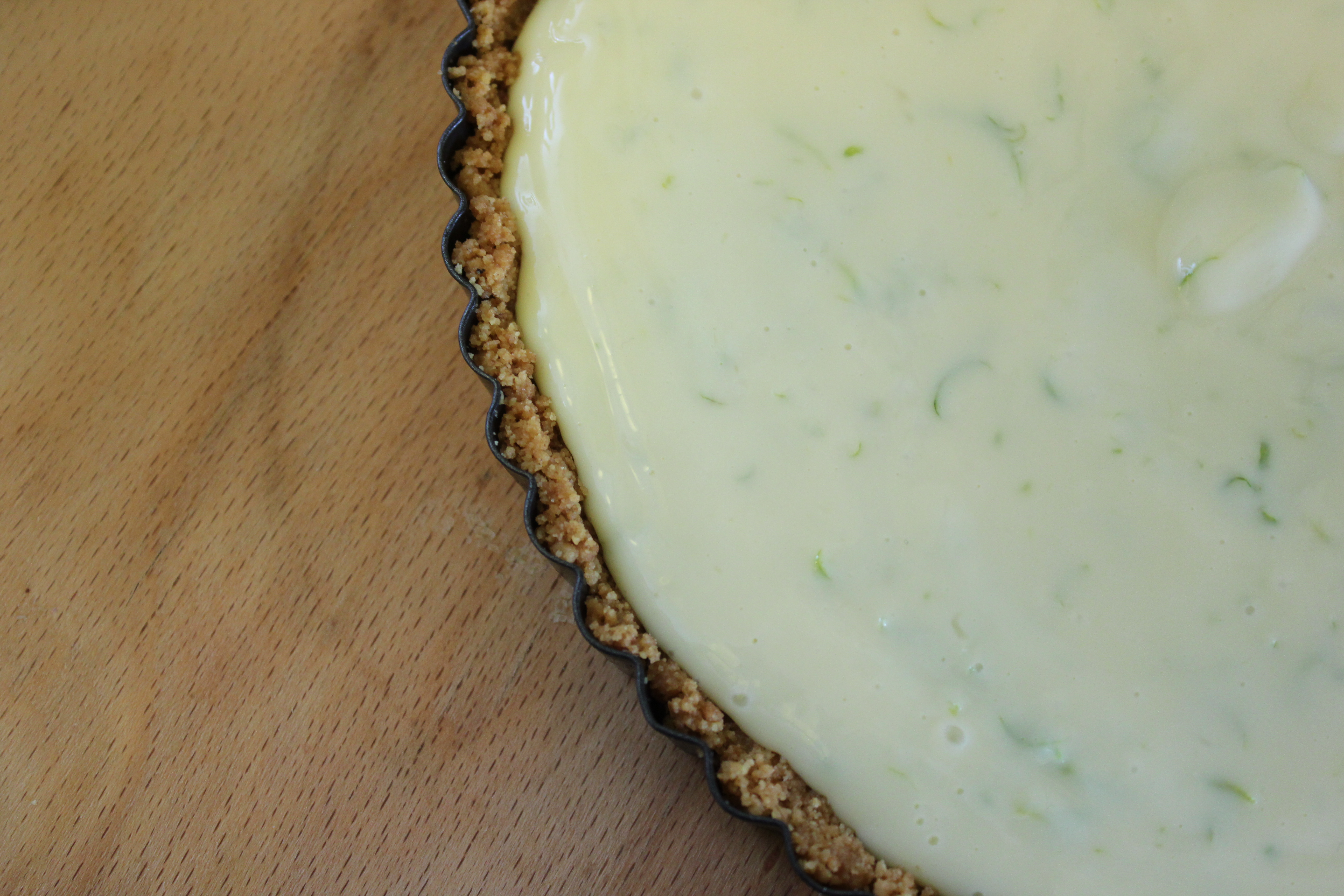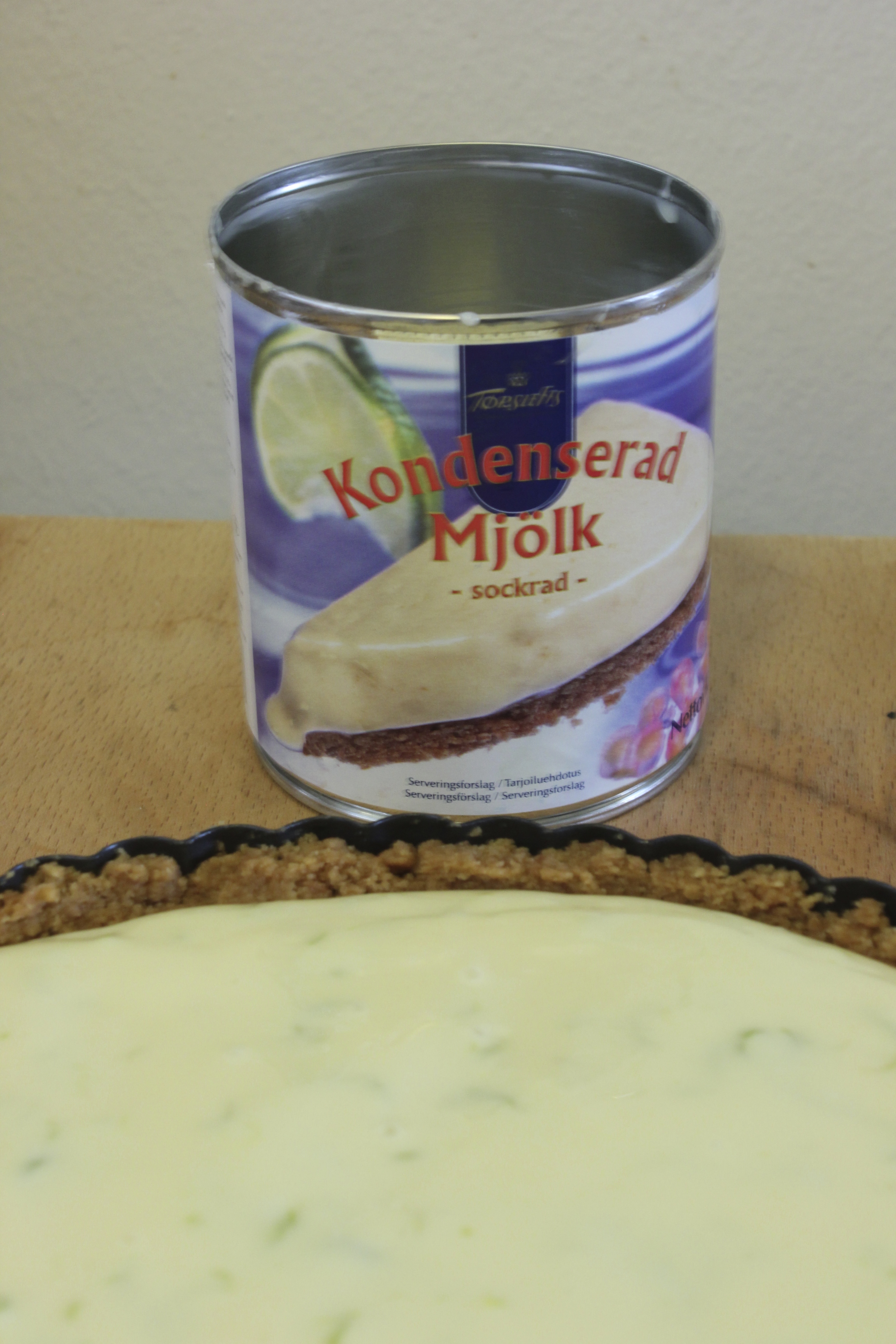 Ég keypti niðursoðna mjólk af einskærri forvitni fyrir mörgum mánuðum síðan. Stuttu seinna sá ég uppskrift af Key lime pie fyrir tilviljun. Ég var rosalega ánægð með sjálfa mig að eiga til þetta framandi hráefni í hana og hét því að hún yrði bökuð við fyrsta tækifæri. Þetta tækifæri lét eitthvað á sér standa og fór þetta þannig að ég bakaði hana á föstudagseftirmiðdegi til að borða um kvöldið, ég hreinlega gat ekki beðið lengur.
