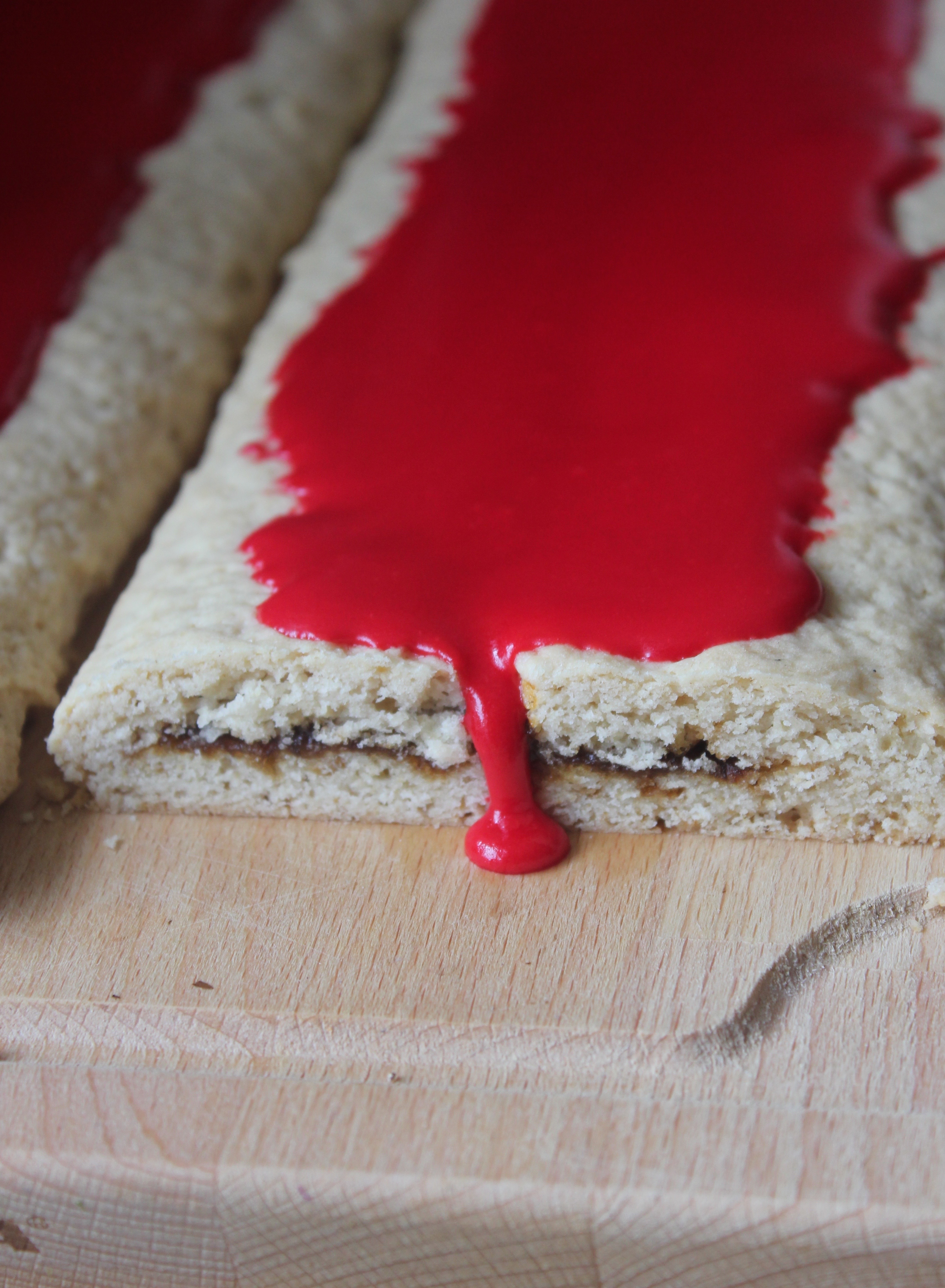 Blandið saman flórsykri, vatni og smá af rauðum matarlit. Hrærið saman þar til glassúrinn er nægilega þunnur til að sitja fallega á vínarbrauðinu en ekki svo þunnur að hann leki af. Dreifið glasúr á vínarbrauðið og njótið 🙂