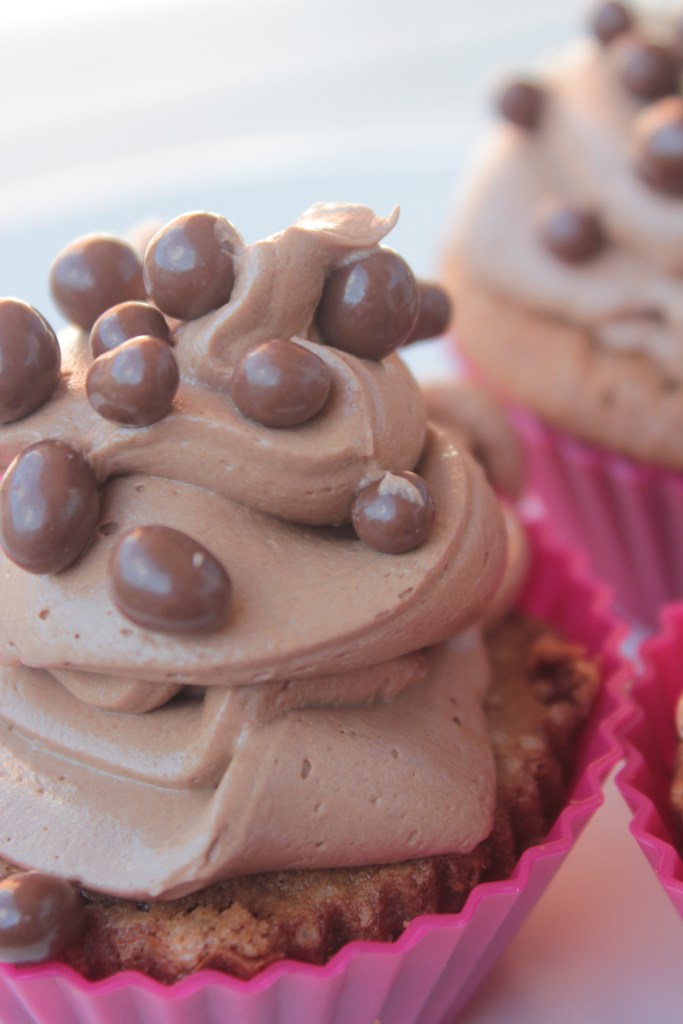 Fyllið 12 stór muffinsform, fyllið upp að ca. ¾. Bakið í 20 – 25 mínútur, eða þar til prjónn kemur hreinn upp úr kökunum. Látið kólna vel áður en kremið er sett á kökurnar.