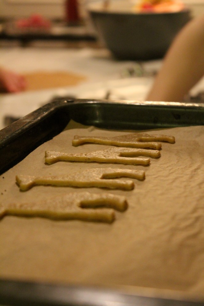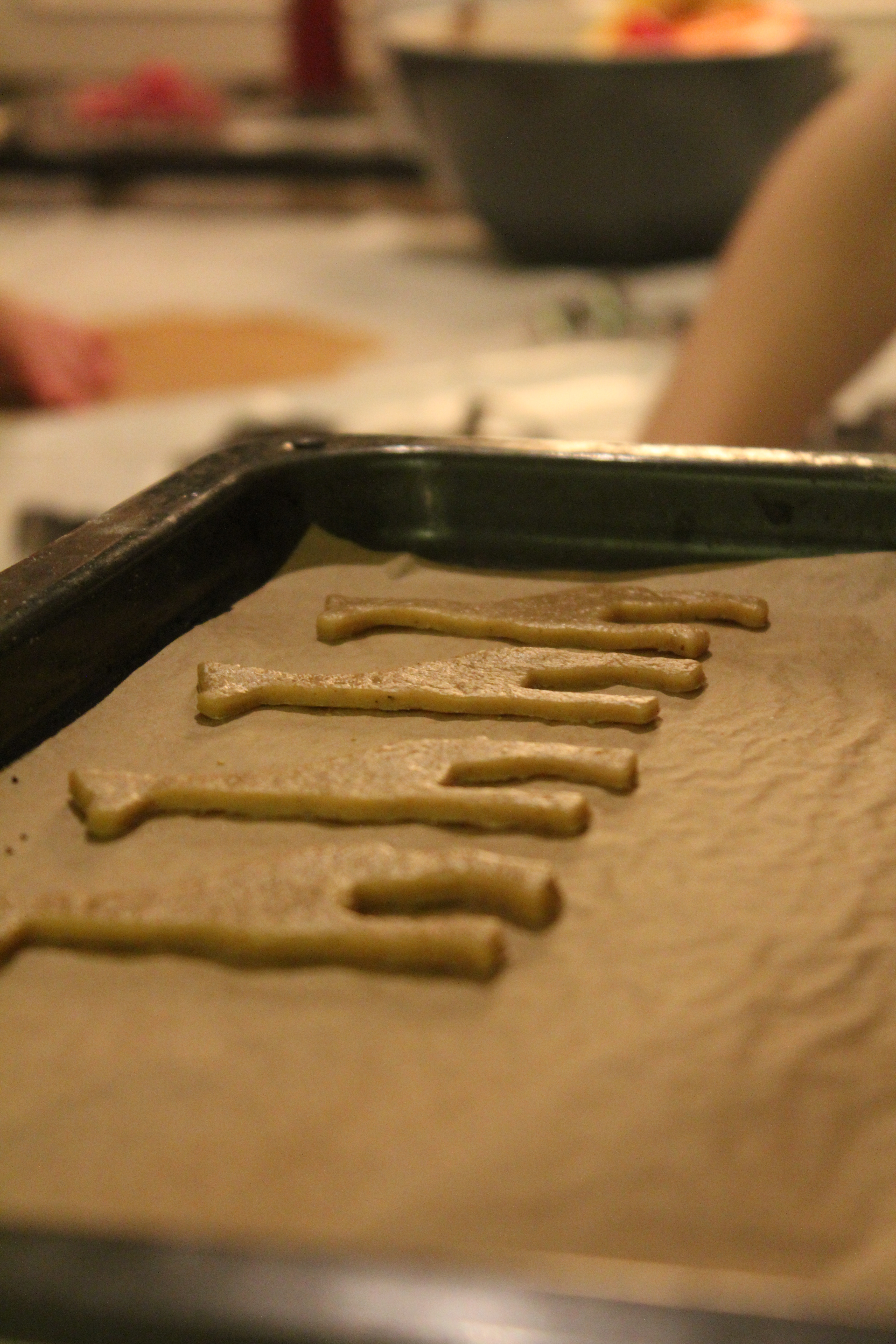 Fletjið út og skerið út fígúrur. Bakið við 180° í 6-8 min.
