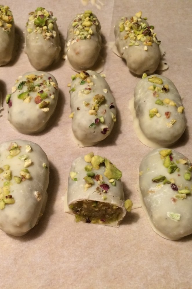 *Hægt er að fá vegan hvítt súkkulaði í Heilsuhúsinu. Ef það er notað þá er gott að þekja marsipanið tvisvar.