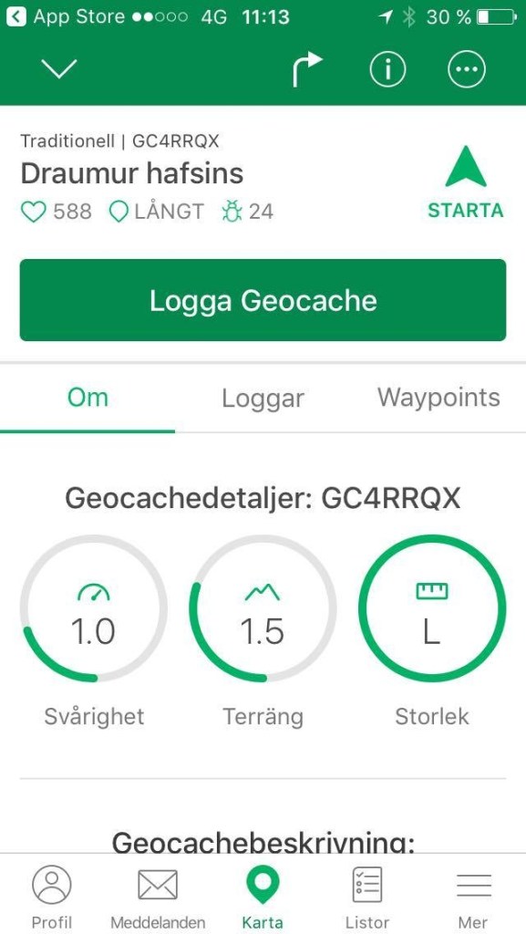 Þetta cache er einstaklega gott fyrir byrjendur, í miðri Reykjavík og auðvelt aðgengi og létt að finna. Dæmin hér á eftir eru öll tekin frá því 🙂