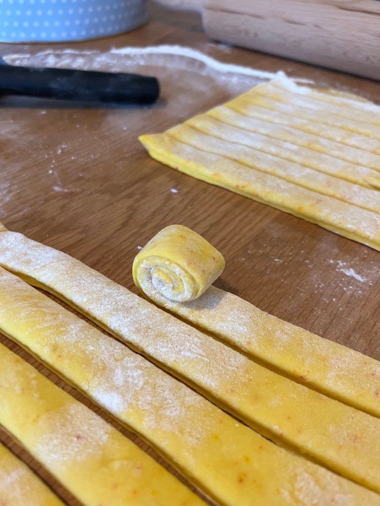Ég gef uppskrift hér að neðan að bæði saffranslengju og saffransbollum. Það er að sjálfsögðu hægt að gera bollur úr allri uppskriftinni, eða tvær lengjur. Nú eða helminga hana, ef fólki finnst þetta of stór uppskrift 🙂