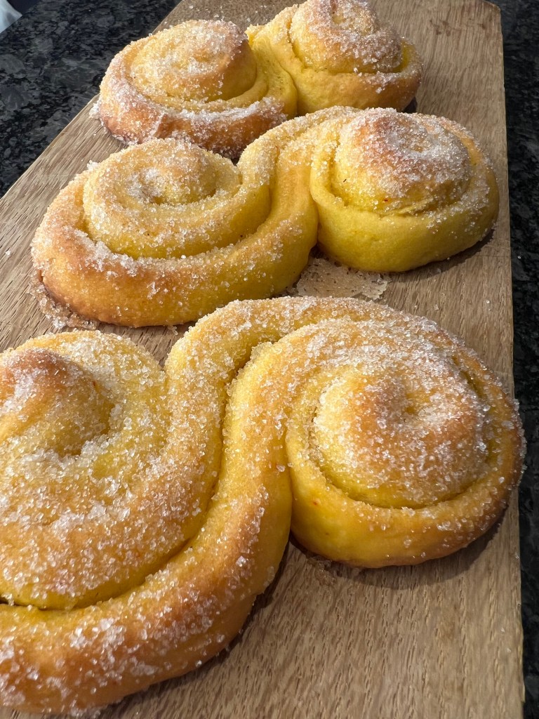 Saffranslengja með marsípani og saffransbollur með vanillusmjörkremi