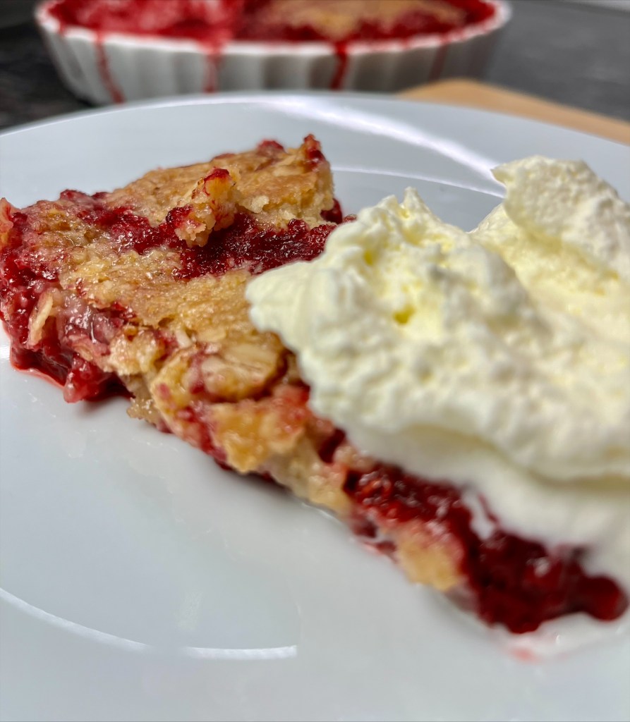 Eplið virðist ekki hafa fallið sérlega langt frá eikinni. Dóttir mín sem er 12 ára virðist hafa jafn gaman af því að baka og mamma sín og er barasta orðin ansi lunkin í eldhúsinu. Uppáháldskakan hennar þessa dagana er þetta hindberjapæ, sem er asnalega gott miðað við hvað það er einfalt. Fullkomin uppskrift til að leyfa upprennandi bökurum að spreita sig á 😀